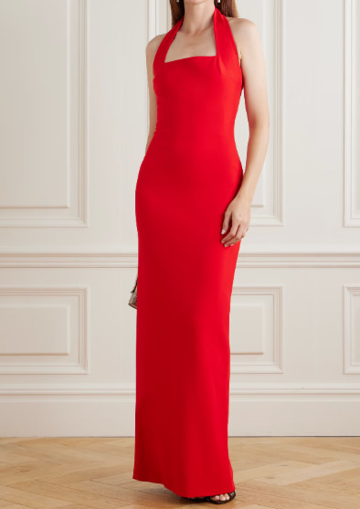 【IVE ウォニョン着用】Solace London クレープ ホルターネック ロングドレス|フォーマル・ガウン|レッド