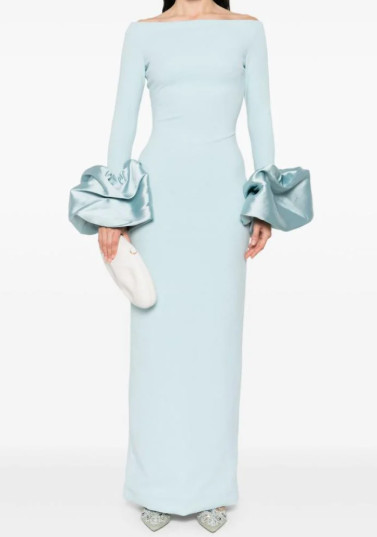 Solace London オフショルダー ロングドレス|ラッフルスリーブ ガウン|ブルー