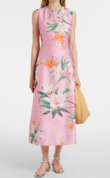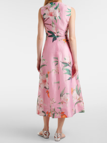 Cleo floral linen-blend midi dress は、年齢やトレンドに左右されない完成度を持っています。ワードローブに加えることで、数年先まで活躍し続ける“投資価値のあるドレス”。大量消費ではなく、本当に良いものを選びたい女性にこそふさわしい存在です。