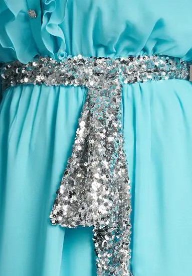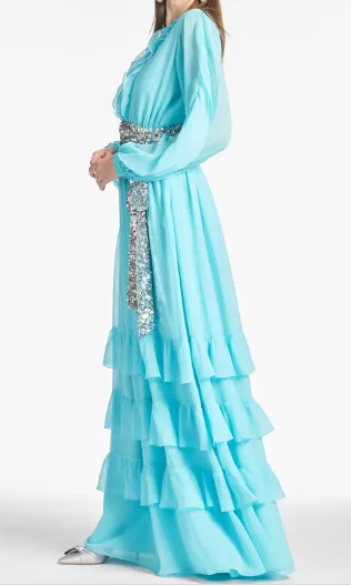 Sachin & Babi Venus Gown ブルー|ビジューサッシュ付き シフォン フリル ロングドレス