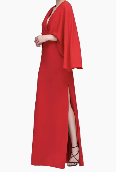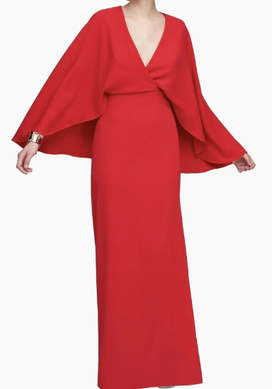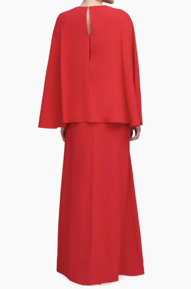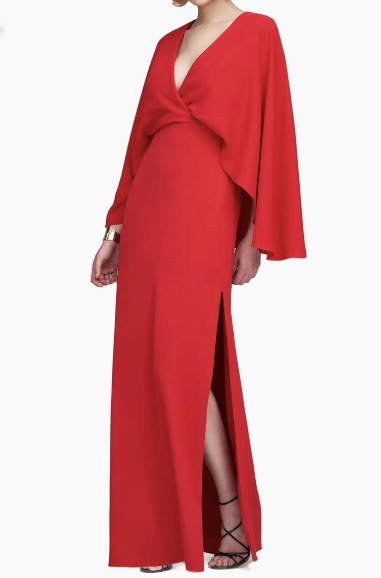 HALSTON Olaya ケープスリーブ ロングドレス|エレガント レッドガウン