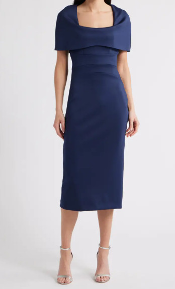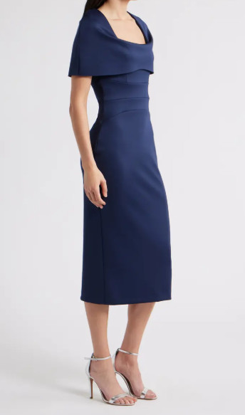 身体のラインを美しく包み込む、計算されたミディ丈シルエット。