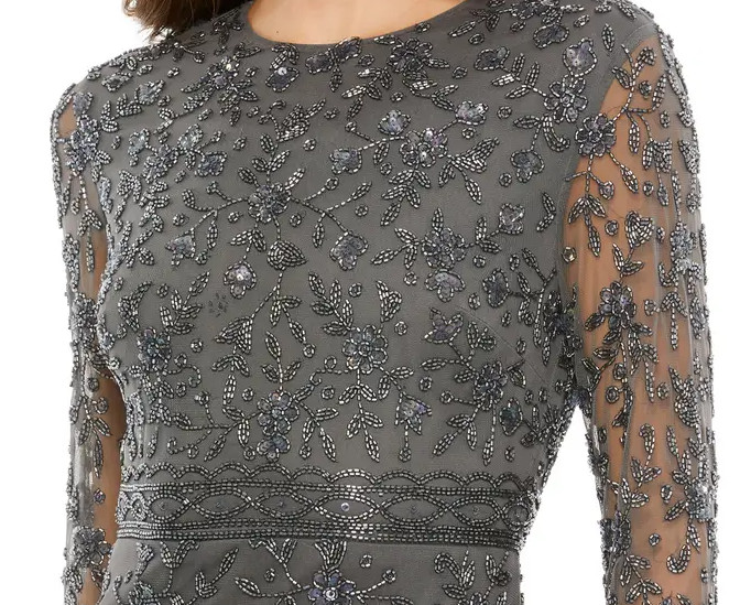 セール!Mac Duggal マックドゥガル|ビーズ刺繍レースドレス グレー