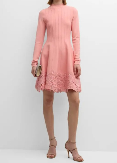 Lela Rose Georgia Dress|レラローズ レース裾ニットフレアドレス ピンク