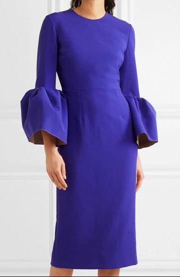 ROKSANDA マーゴット ベルスリーブ シース ミディドレス|パープル・ブルー