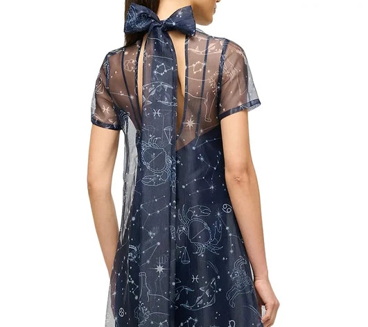 夜空に浮かぶ星座を思わせるプリントは、アートピースのような存在感。遠目にはシック、近づくほどに物語を感じさせるデザインで、感度の高い大人の装いに最適です。
