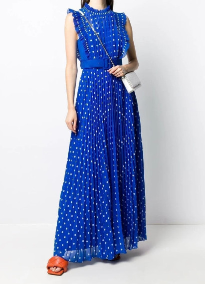【ドラマ使用】Self Portrait セルフポートレート ポルカドット ブルーシフォン マキシドレス|