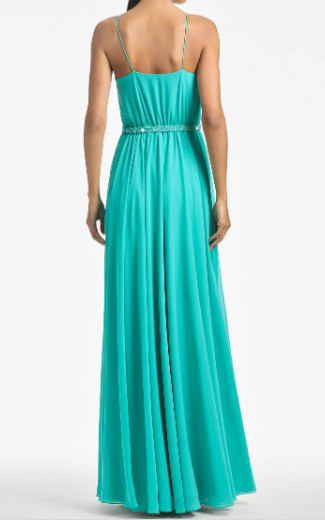 ドレス全体には、透け感の美しいエアリーなシフォンを贅沢に使用。