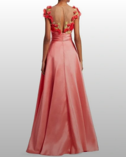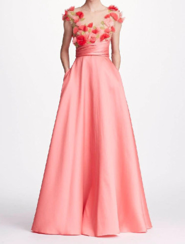 Marchesa Notte コーラル フラワーアップリケ ボールガウン|マルケッサノッテ イブニングドレス