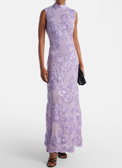 ROTATE フローラル刺繍メッシュ マキシドレス パープル系