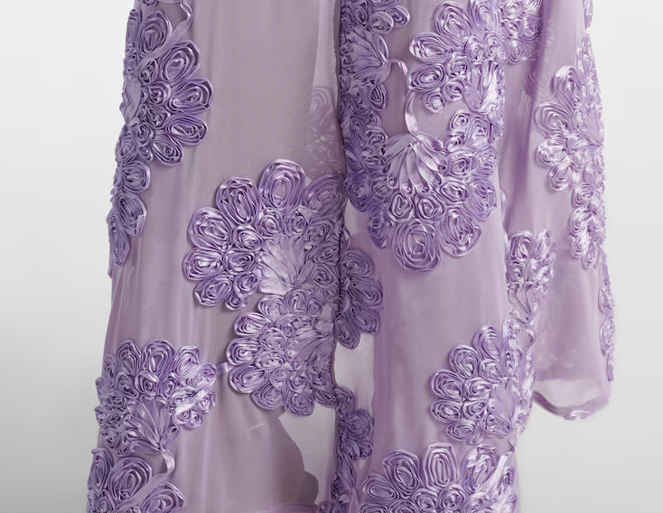 ROTATE「Floral Embroidered Mesh Maxi Dress」は、繊細なフローラル刺繍を贅沢に施したエレガントなマキシドレスです。やわらかなラベンダーカラーが肌を明るく見せ、気品ある透明感を演出。華美になりすぎない洗練された色合いは、大人の女性の魅力を自然に引き立てます。海外セレブのファッションシーンでも注目されるROTATEならではの、モード感とフェミニンさを兼ね備えたフォーマルドレスです。