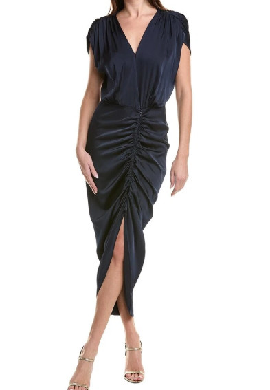 Nicole Miller Vネック ドレープ ミディドレス