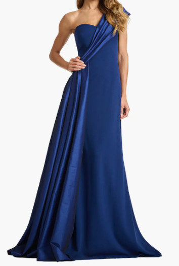 Tadashi Shoji タダシショージ Beis ワンショルダードレープロングドレス ネイビー|演奏会・パーティーフォーマル