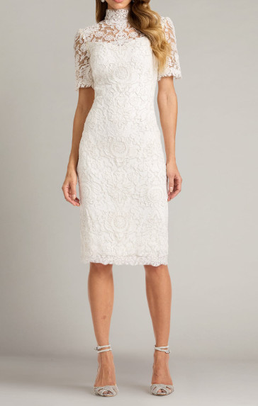 Tadashi Shoji タダシショージ Marise イリュージョンレースドレス アイボリー|パーティー・フォーマル膝丈
