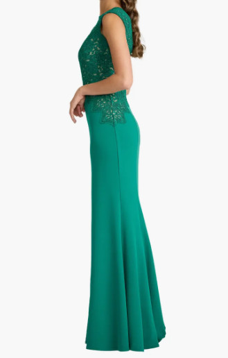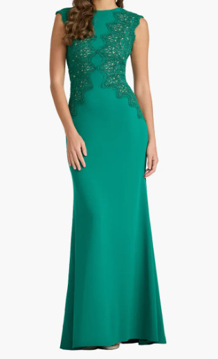 Tadashi Shoji タダシショージ Gant 刺繍レース ロングドレス グリーン フォーマル・演奏会対応|
