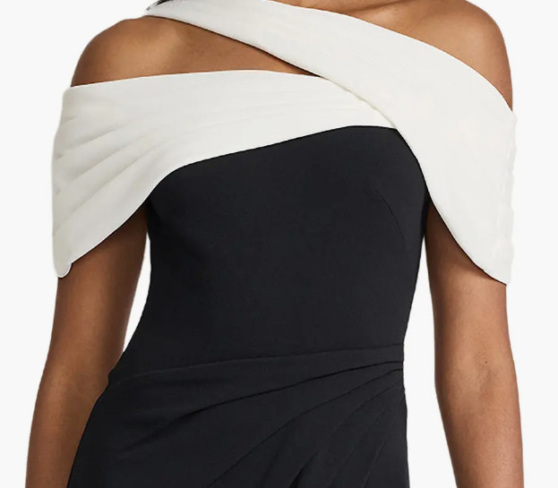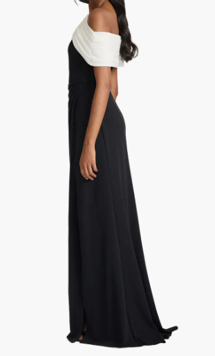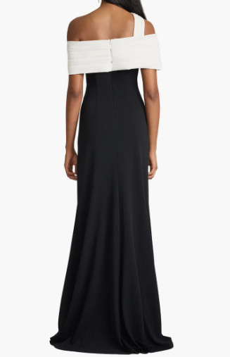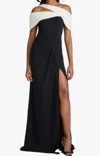 Tadashi Shoji タダシショージ Sumit ワンショルダー ドレープロングドレス ブラック×アイボリー 演奏会・パーティー