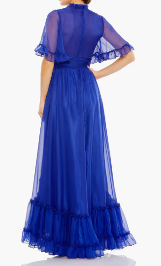 Mac Duggal マックドゥガル ハイネック シフォン ハイローヘム ロングドレス ブルー |演奏会・パーティー対応