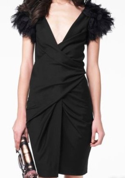 チュール付きのお袖がゴージャスなウールジャージーラップドレスです。