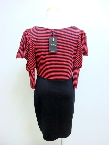レッドとブラックのストライプトップとブラックジャージースカートの切り替えドレスです。