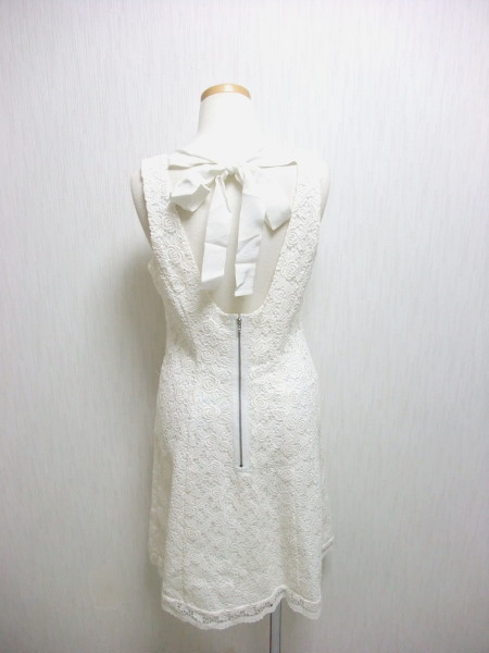 花柄のクロッシェが清楚で上品な印象のホワイトドレスです。