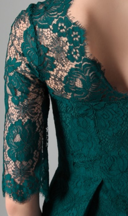 花柄レースを重ねたエレガントなピーコックカラーのドレスです。