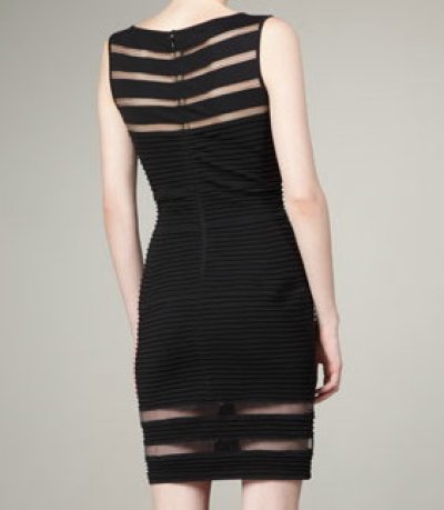 Tadashi Shoji メッシュストライプバンデージドレス ブラック