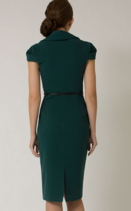 上品な襟付きのスクエアネックのトップに、タイトスカートがエレガントなドレスです。
