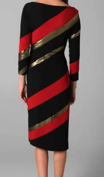ブラックに、赤とゴールドラメのストライプがゴージャスなドレスです。