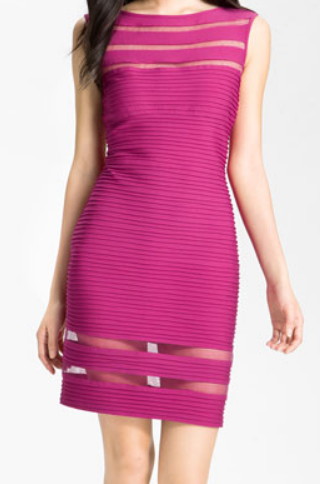 Tadashi Shoji メッシュストライプバンデージドレス ピンク系