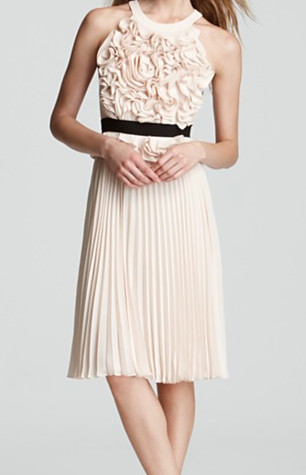 【浅田真央さん、Kaley Cuoco愛用】BCBGMAXAZRIA フローラルアップリケプリーツドレス