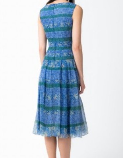 レースや花柄のストライプ風ミックスプリントがさわやかなドレスです。
