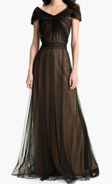 Tadashi Shoji Portrait Collar Pleated Mesh Gown ブラック