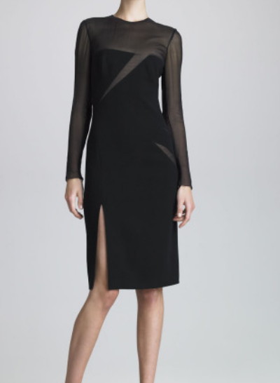 メッシュトップ、メッシュスリーブに、胸元やサイドのカットアウトメッシュがセクシーなドレスです。