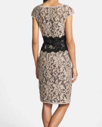 再販売!【木佐彩子さん、江藤愛さんご着用、家庭画報掲載】Tadashi Shoji Embroidered Lace Sheath Dress ベージュ系、グレー系