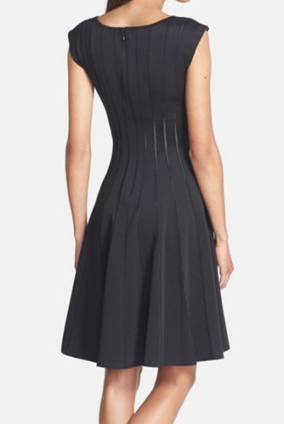 【広瀬アリスさんご着用】Tadashi Shoji Mesh Detail Knit Fit & Flare Dress ブラック