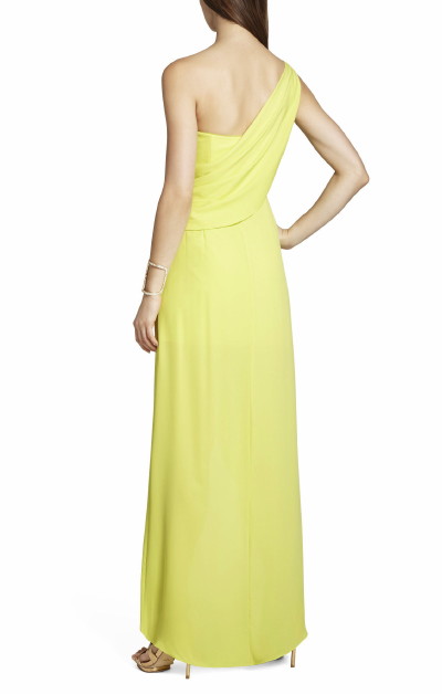 ドラマ【ロイヤルペインズ使用】BCBGMAXAZRIA Kail Draped One Shoulder Gown レモングラス