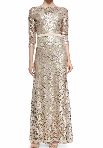Tadashi Shoji Lace Bow-Waist Gown Ginseng