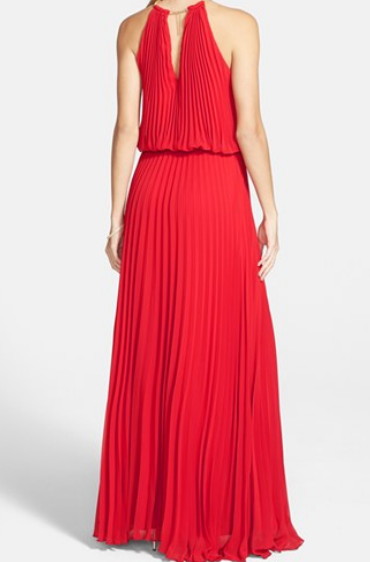 チェーンネックに背中のスリットがセクシーでゴージャスなプリーツドレスです。
