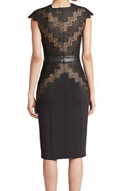 【馬場典子さん、Amy Poehler愛用】Tadashi Shoji Geometric Lace-Top Sheath ブラック