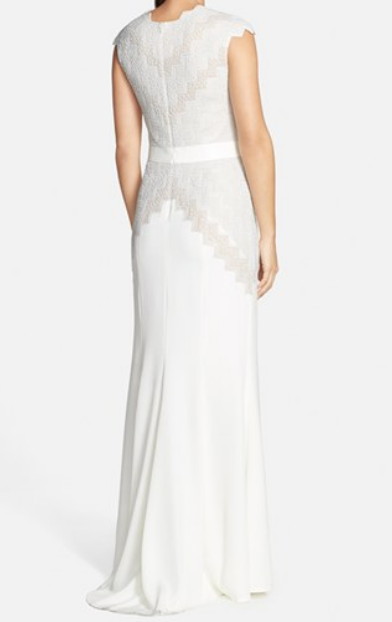 Tadashi Shoji Cap Sleeve Lace & Crepe Gown アイボリー