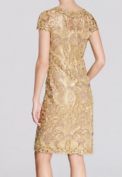 【ヴァンサンカン掲載】Tadashi Shoji Corded Embroidery on Tulle Cap Sleeve Dress ゴールド