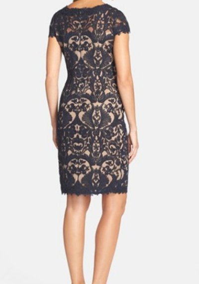 【ヴァンサンカン掲載】Tadashi Shoji Corded Embroidery on Tulle Cap Sleeve Dress ブラック