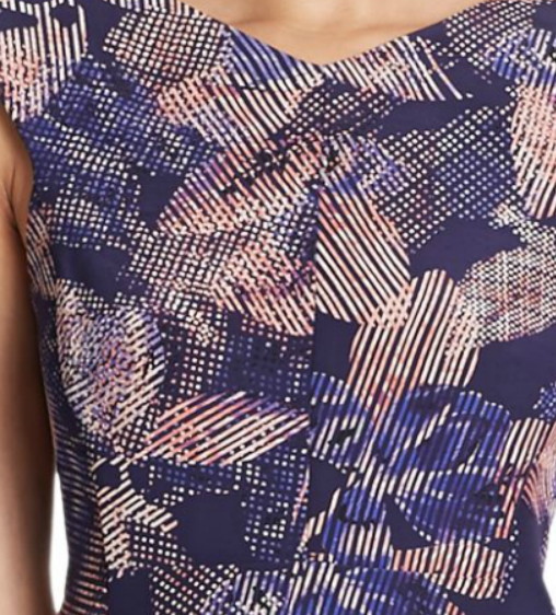 パープル系のグラフィックガーデンプリントが素敵なドレスです。