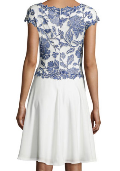 Tadashi Shoji Cap-Sleeve Floral-Lace Fit & Flare Cocktail Dress ブルー系