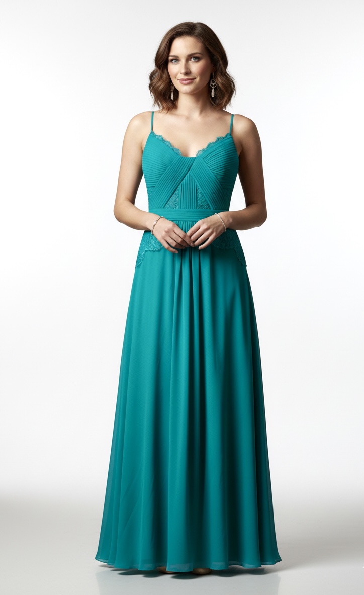 このドレスの魅力は、「洗練された色気と品のある華やかさ」を同時に叶える点にあります。印象的なグリーンカラーは肌を美しく見せ、会場の照明や自然光の中でも映えるため、演奏会ドレスやフォーマルドレスとして非常に優秀です。さらに、繊細なレースインセットがウエスト周りに施されることで、単なるシンプルドレスでは終わらない立体感と奥行きを演出。視線を自然に上半身へと引き上げ、スタイル全体をバランスよく見せてくれます。「華奢に見せながら、女性らしさを引き出す」——そんな絶妙な設計が、このドレスが選ばれる理由です。