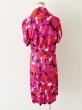 襟付きVネックのジャージーラップドレスに、ピンク系のクラシカルな花柄が素敵です。