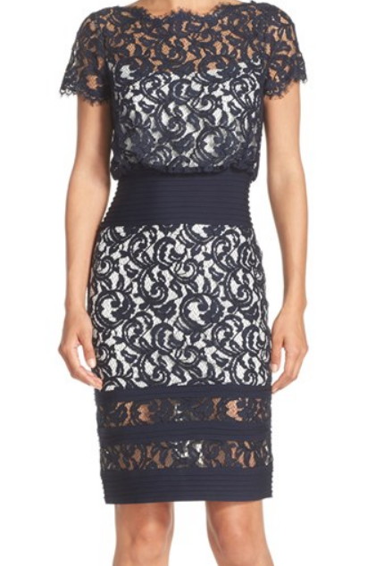 Tadashi Shoji Mixed Media Blouson Dressネイビー
