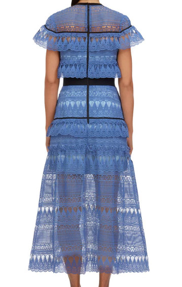 個性的なブルーのレース網が美しいドレスです。