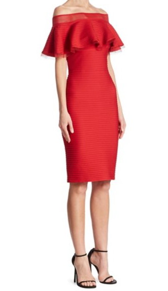 Tadashi Shoji タダシショージ Solid Off-The-Shoulder Dress レッド系