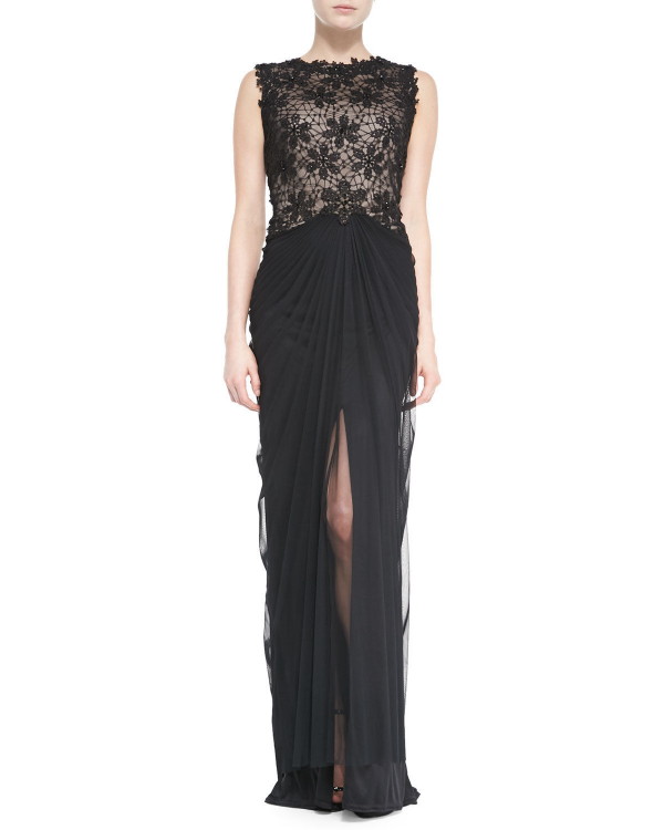 再販売【松本まりかさん、真琴つばささんに衣装提供】Tadashi Shoji タダシショージ Sleeveless Lace-Bodice Gown ブラック
